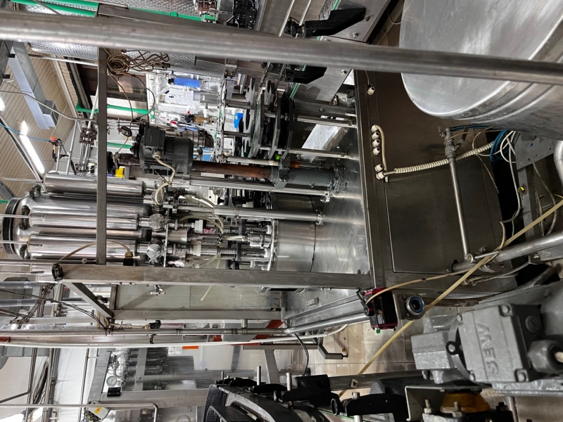 Power: 3 kW Air: 6 bar Number of filling heads (valves): 12 Number of closing heads: 1 Maximum capacity: 2500-3000 pcs / 0.5 lit or 2000 pcs / 1.5 lit (filling speed is changed on the frequency regulator) Capper: PE 28mm (currently set for short neck 1881) The monoblock filled: 100% fruit juices and non-carbonated refreshing soft drinks in PET and in glass packaging (0.5 liter, 0.85 liter, 1 liter, 1.5 liter and 2 liter). Hot or cold filling is possible (The charger was delivered by the manufacturer as a charger for 100% juices for hot filling). It is possible to fill other liquids of low viscosity: Water, vinegar and the like. Several types of format parts go with the machine. The twist off capper is not available. Capping is possible with a 28 mm plastic cap and a 38 mm plastic classic or sporcap cap The monoblock was last used in 2020, and was regularly serviced until then. SIEMENS control, 2004 G., does not have a large screen - only a small one inside the cabinet Dismantled!!! |