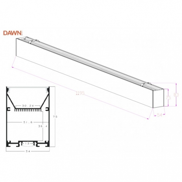 - 1195 x 75 x 54 mm