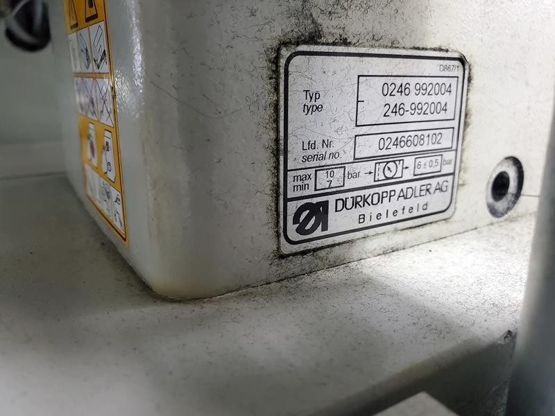 Glava mašine: klasa 0246 992004; Igleni sistem: 2134-85; Rastojanje igala: 10, 12, 14, 16, 20, 24, 26, 30 mm; Veličina igle: Nm 80 do Nm110; Vrsta uboda: Zaštitni šav sa dve igle; Brzina: min. 2000 o / min mak. 3000 o / min; Dužina uboda: min. 2,0 do 3,0 mm; Broj šavova/sažetih šavova: 1 - 10 šavova; Broj šavova/šavova: 0 - 5 šavova; Kondenzovani šavovi dužine boda / bartack: 0,5 - 3,0 mm; Dužina džepa: max. 220 mm Pomak šava: max. + /- 13 mm; Radni pritisak: 6 bara; Potrošnja vazduha: pribl. 6 NL po radnom ciklusu; Nazivni napon: 3 x 230 /400 V / 50/60 Hz; Nazivno opterećenje: Mašina sa vakuumskim duvačem 0,8 KW; Mašina bez vakuumskog duvača 0,5 KW; Dimenzije: 1540 x 925 x 1200 mm (D x Š x V); Radna visina: 790 ... 1100 mm (gornja ivica stola); Težina: 280 kg |